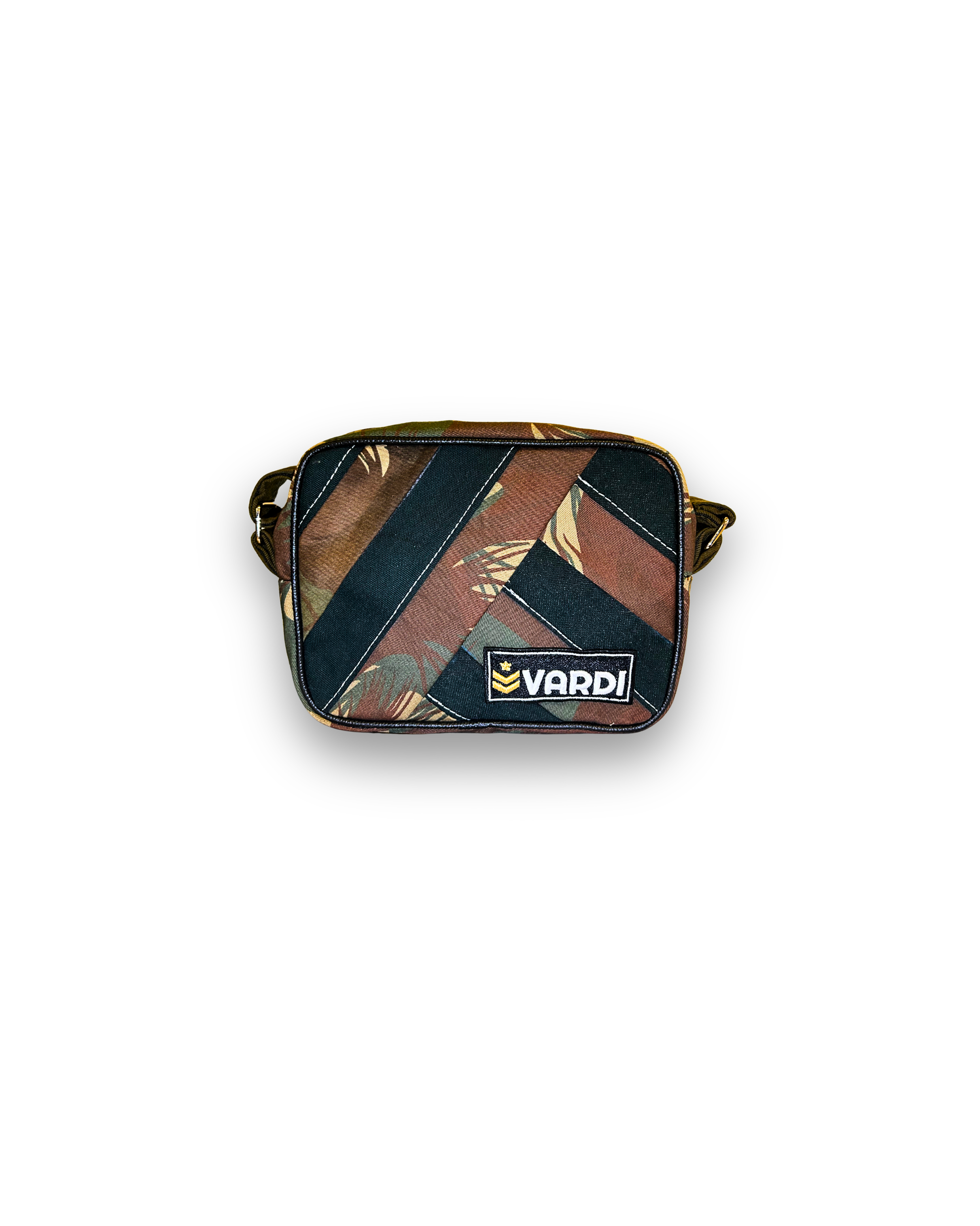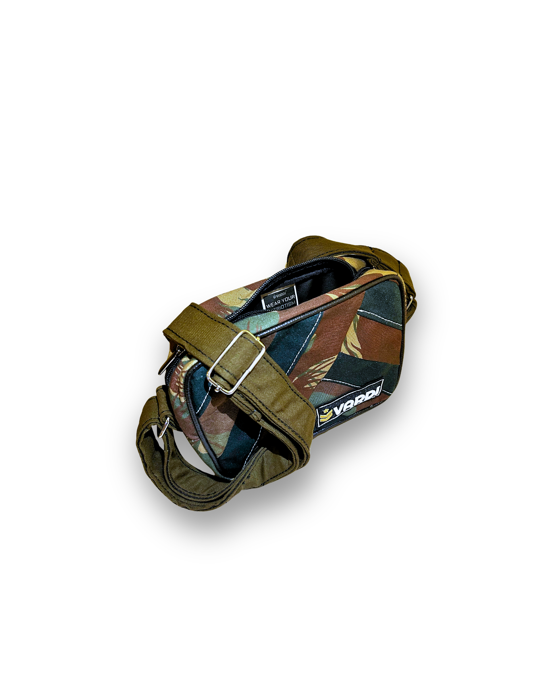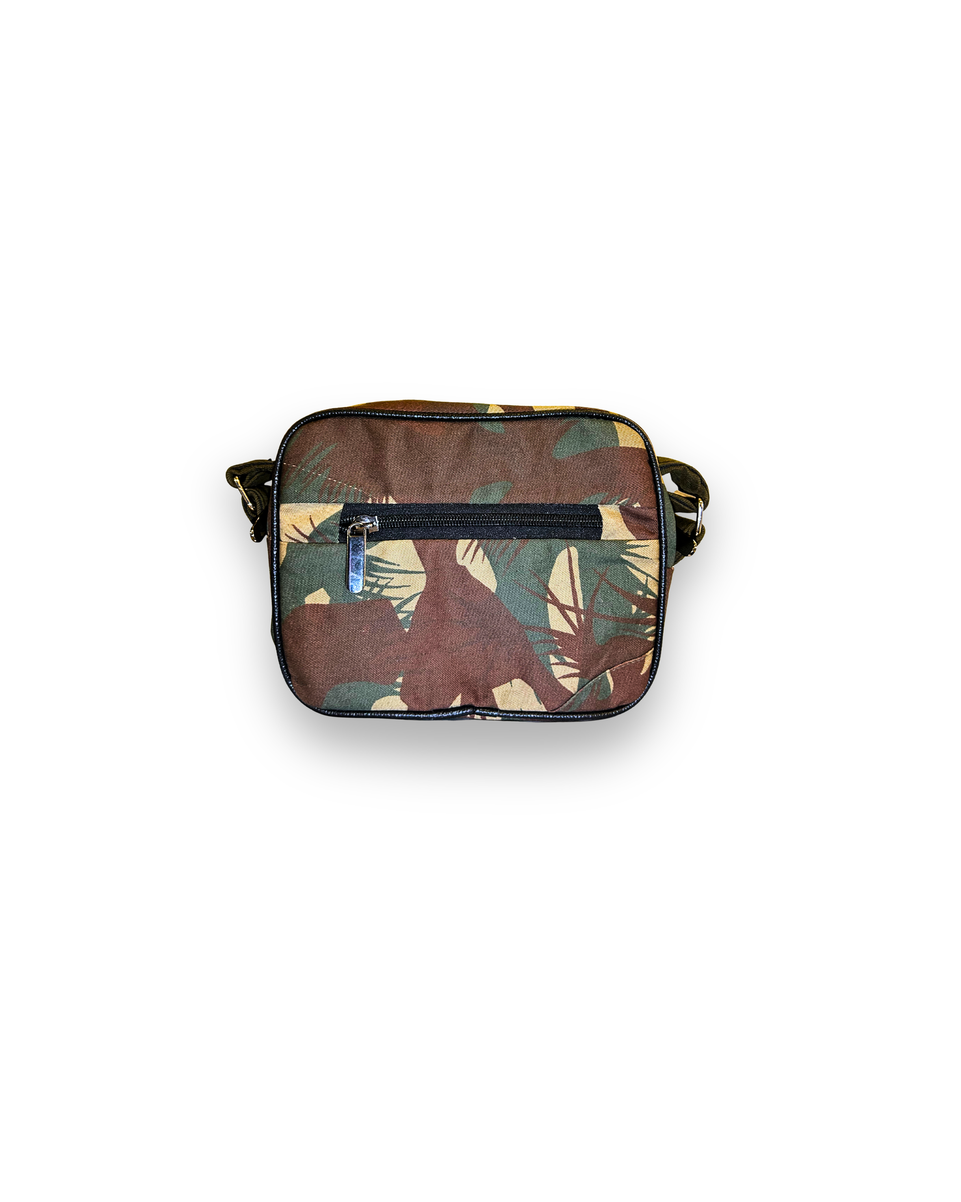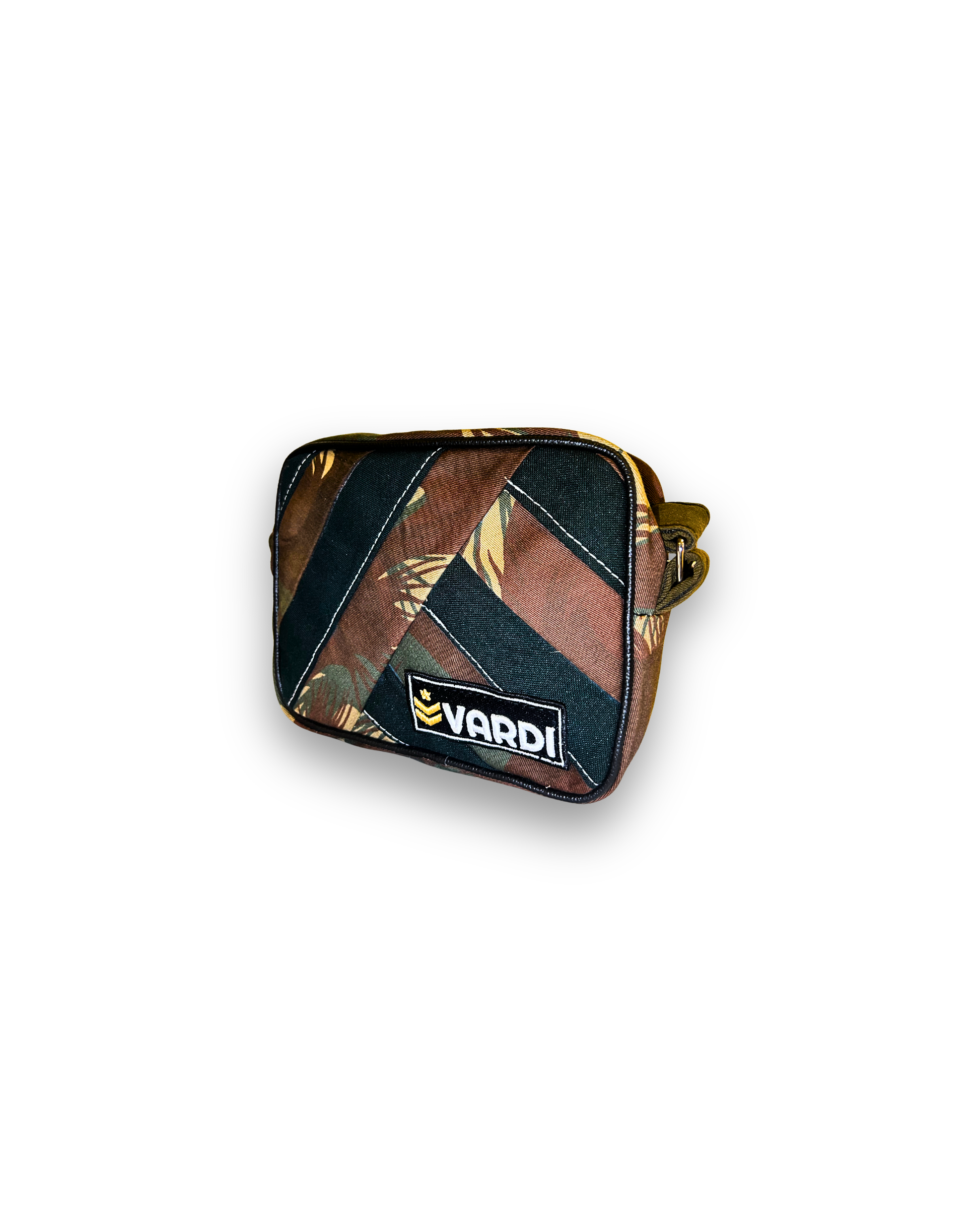 Made from up-cycled military uniforms. Compact and functional design, Secure main compartment with zipper closure, Adjustable shoulder strap, Durable, lightweight & sustainable.